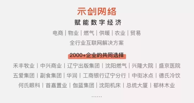 【示劍網(wǎng)絡(luò)】作為遼沈地區(qū)知名的互聯(lián)網(wǎng)解決方案提供商,十年來(lái)為兩千余企業(yè)單位實(shí)現(xiàn)互聯(lián)網(wǎng)轉(zhuǎn)型應(yīng)用及技術(shù)中臺(tái)研發(fā)落地服務(wù),其中包括禾豐牧業(yè),中興商業(yè)集團(tuán),大連華錄,遼寧出版集團(tuán),沈陽(yáng)燃?xì)?,沈煤集團(tuán)等多家上市公司及行業(yè)內(nèi)龍頭企業(yè)。示劍愿與廣大企業(yè)一同探索數(shù)字經(jīng)濟(jì)時(shí)代的無(wú)限可能!